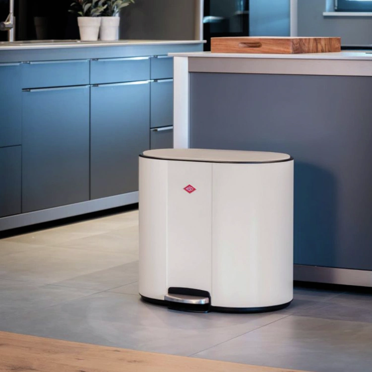 De WESCO® Multi Collector 2 wit mat combineert modern design met slimme functionaliteit. Met twee kunststof inzetemmers van 25 liter biedt deze vrijstaande pedaalemmer een overzichtelijke 2-voudige afvalscheiding én extra opbergruimte voor keukenbenodigdheden zoals schoonmaakproducten, vaatwastabletten, folies, zakken, koffiecups en doeken. De tijdloze wit matte afwerking past perfect in zowel moderne als klassieke keukens.