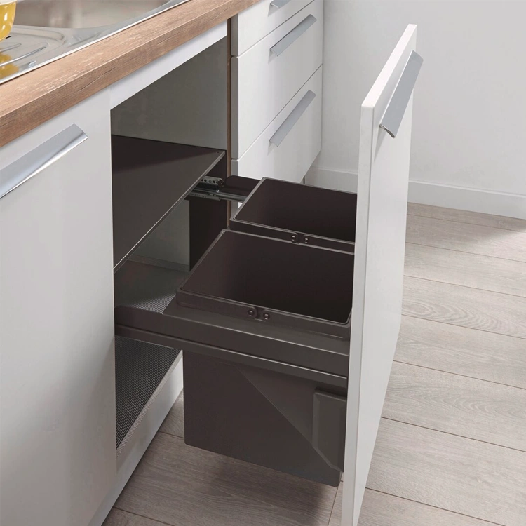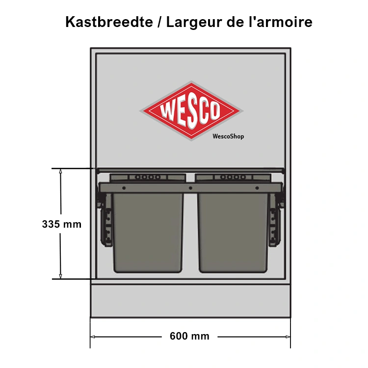 De WESCO® Pullboy Soft Comfort® 335 K/600-2 combineert comfort en efficiëntie voor moderne keukens. Speciaal ontworpen voor kasten met een korpusbreedte van 600 mm, biedt dit uittrekbare afvalsysteem een royaal volume van 34 liter. Dankzij het soft-close mechanisme sluit de lade altijd zacht en geruisloos.