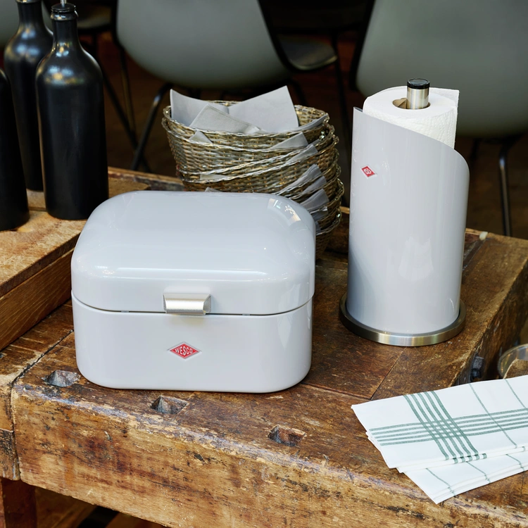 De WESCO Single Grandy® broodtrommel in Cool grijs is de perfecte keuze voor wie een kleine keuken heeft, maar toch zijn brood stijlvol en hygiënisch wil bewaren. Het compacte formaat past moeiteloos op een kleiner werkblad, zonder in te boeten aan opbergruimte of design.