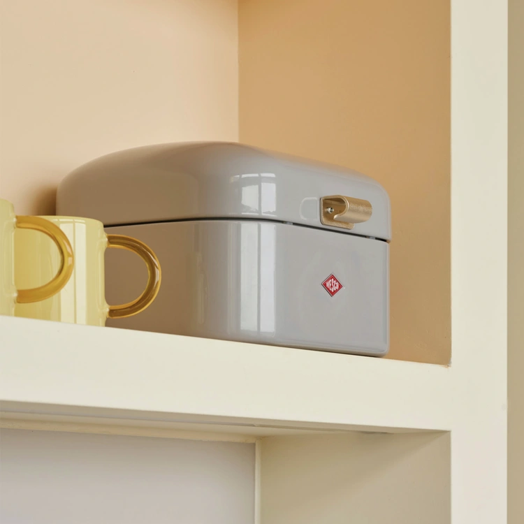 Naast broodbox is de Single Grandy® ook ideaal als voorraadblik of organizer: gebruik hem voor medicijnen, snacks, cosmetica of kleine spullen in keuken, badkamer of op bureau. Zo combineer je praktische opbergruimte met de herkenbare retro-look van WESCO.
