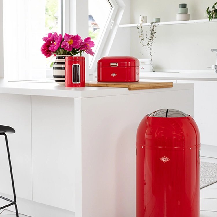 Naast broodbox is de Single Grandy® ook ideaal als voorraadblik of organizer: gebruik hem voor medicijnen, snacks, cosmetica of kleine spullen in keuken, badkamer of op bureau. Zo combineer je praktische opbergruimte met de herkenbare retro-look van WESCO.