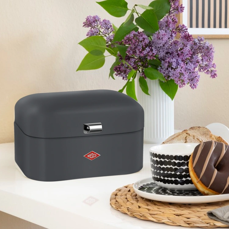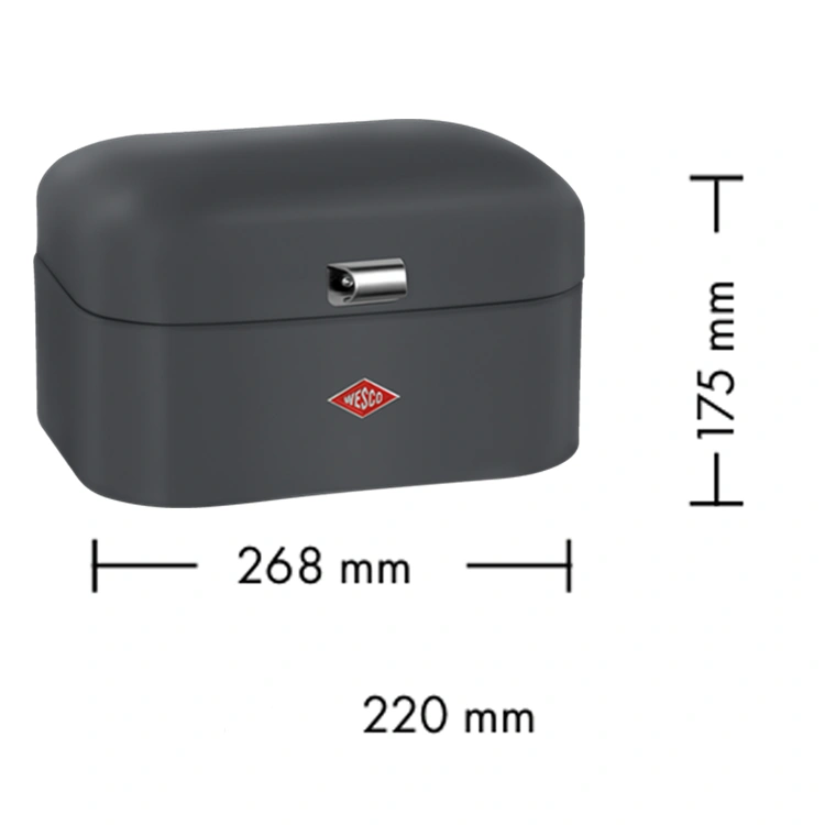 De WESCO Single Grandy® broodtrommel in Mat grafiet is de perfecte keuze voor wie een kleine keuken heeft, maar toch zijn brood stijlvol en hygiënisch wil bewaren. Het compacte formaat past moeiteloos op een kleiner werkblad, zonder in te boeten aan opbergruimte of design.