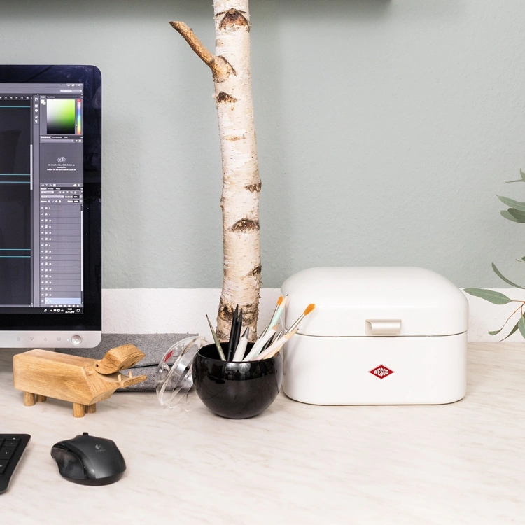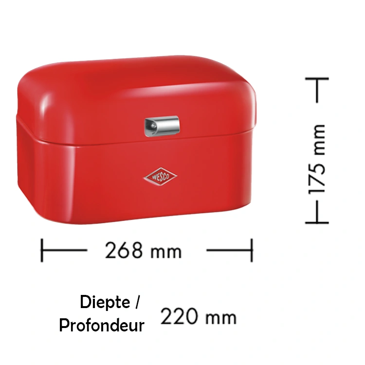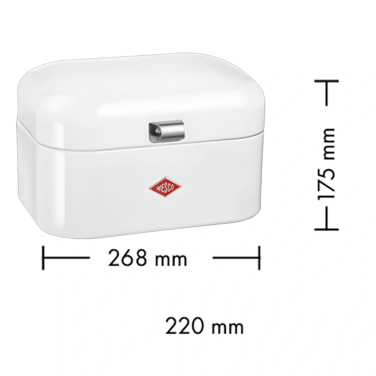 Naast broodbox is de Single Grandy® ook ideaal als voorraadblik of organizer: gebruik hem voor medicijnen, snacks, cosmetica of kleine spullen in keuken, badkamer of op bureau. Zo combineer je praktische opbergruimte met de herkenbare retro-look van WESCO.