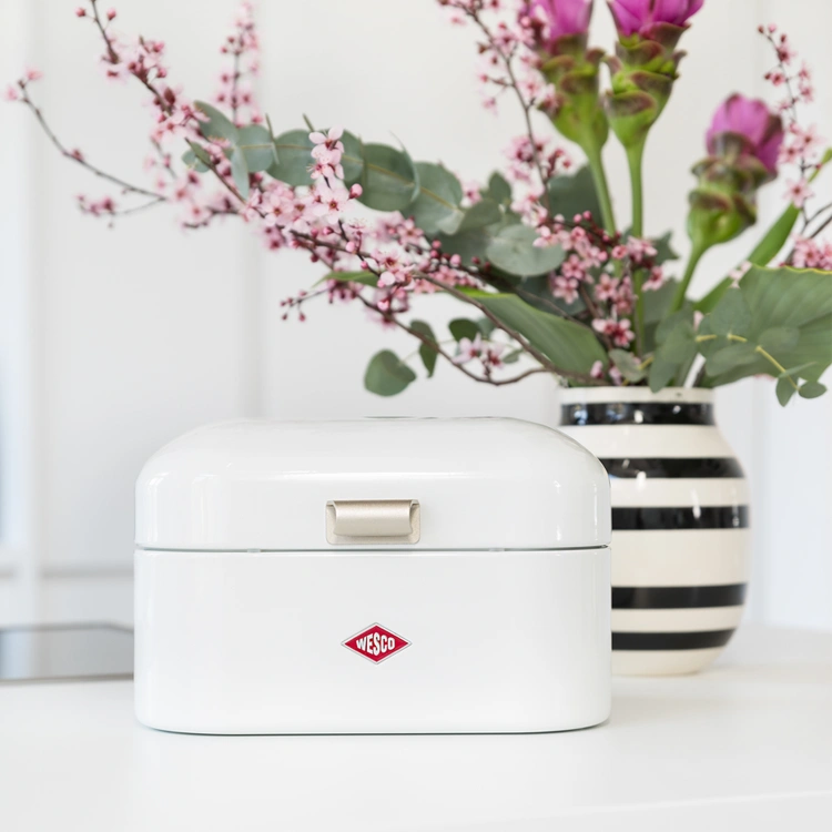 Naast broodbox is de Single Grandy® ook ideaal als voorraadblik of organizer: gebruik hem voor medicijnen, snacks, cosmetica of kleine spullen in keuken, badkamer of op bureau. Zo combineer je praktische opbergruimte met de herkenbare retro-look van WESCO.