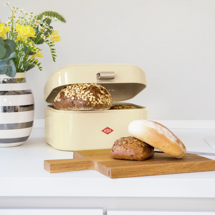Naast broodbox is de Single Grandy® ook ideaal als voorraadblik of organizer: gebruik hem voor medicijnen, snacks, cosmetica of kleine spullen in keuken, badkamer of op bureau. Zo combineer je praktische opbergruimte met de herkenbare retro-look van WESCO.
