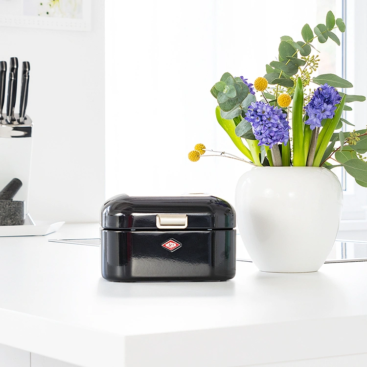 De WESCO Single Grandy® broodtrommel in Zwart is de perfecte keuze voor wie een kleine keuken heeft, maar toch zijn brood stijlvol en hygiënisch wil bewaren. Het compacte formaat past moeiteloos op een kleiner werkblad, zonder in te boeten aan opbergruimte of design.