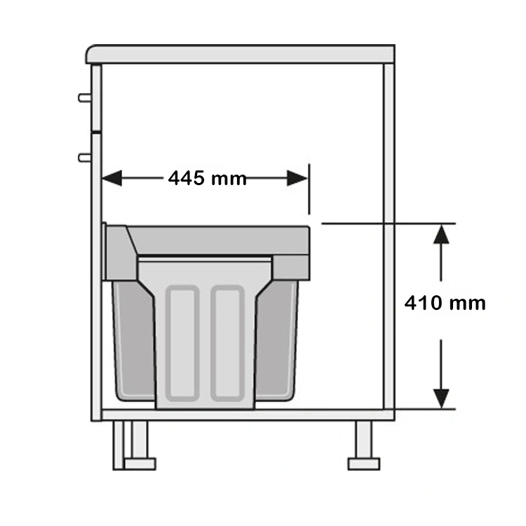 De Double-Boy is ontworpen voor standaard keukenkasten. Controleer wel altijd de minimale inbouwmaten voor aankoop.